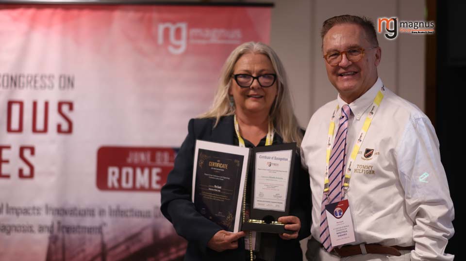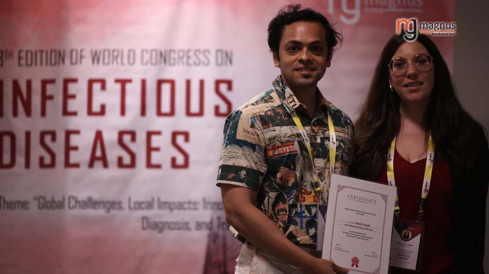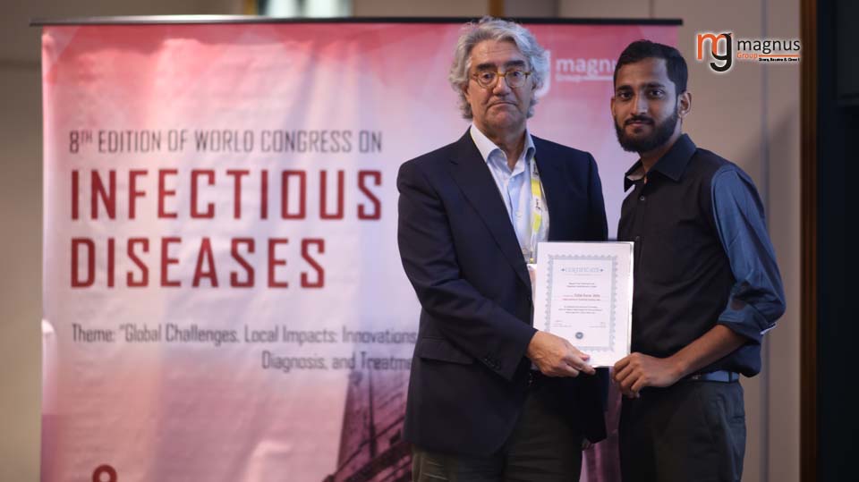 Nikrish S Hegde, Indian Radiological And Imaging Association, India is felicitated by Emanuela Ruggiero for Poster Presentation