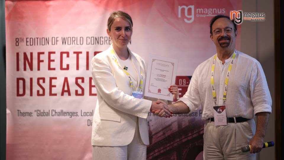 Fjorda Berisha from Clinic of Infection Disease, Albania is felicitated by Yazdan Mirzanejad